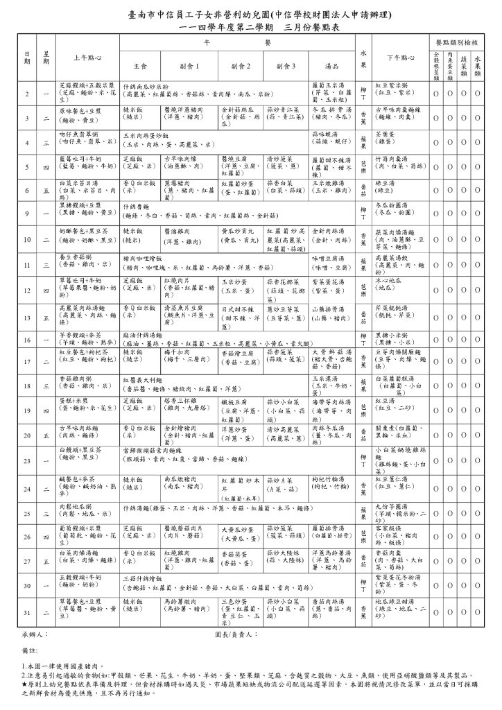 115年3月餐點表