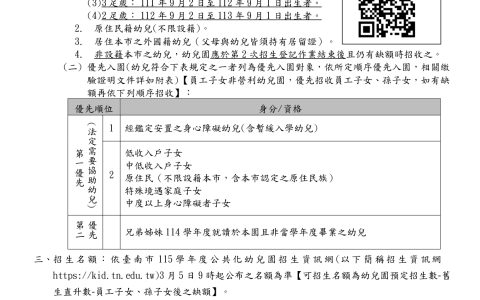 114學年度新生入園抽籤錄取名單 報到時間:114年3月6日 ...